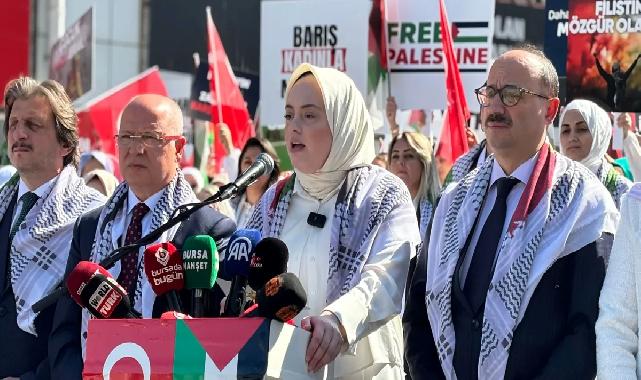 Adiviye ELBAŞ - gazeteabc / BURSA (İGFA) - AK Parti Genel Merkez Kadın Kolları, 81 ilde eş zamanlı olarak “Gazze İçin Sessiz Çığlık” etkinliği düzenledi. Gazze’deki insani krize dikkat çeken etkinlikte, Bursa AK Parti Kadın Kolları Başkanı İmren Çavuşoğlu, Bursa’daki basın açıklamasında duygusal bir konuşma yaptı. Çavuşoğlu, “Duvarlara kanla yazılmış isimler, bir annenin yitik hayali, bir çocuğun göremeyeceği bahar, bir bebeğin yaşayamayacağı çocukluk. Bu acının adı: Gazze. Bugün kadınlar olarak Gazze’nin sessiz çığlığına ses olmak için meydanlardayız. 81 ildeki bu zincir, evlatlarını kaybeden anne-babaların, öksüz-yetim çocukların ve insanlığını kaybetmeyen herkesin zinciridir” dedi. Gazzeli bir annenin, “Eve bir torba un getirip çocuklarımın karnını doyursam, ölüme razıyım,” sözünü aktaran Çavuşoğlu, “Bu zulmü görmezden gelenlere soruyorum: Kalbiniz nerede?” diye sordu. “BARIŞ KADINLA MÜMKÜN” Çavuşoğlu, Kur’an’dan “Bir insanı öldüren, bütün insanlığı öldürmüş gibidir” ayetini anımsatarak, Gazze’nin ilahi bir imtihan olduğunu vurguladı. Küresel Sumud Filosu’nun uluslararası sularda İsrail’in hukuksuz müdahalesine maruz kaldığını belirten Çavuşoğlu, “Türkiye, Cumhurbaşkanımız Recep Tayyip Erdoğan’ın kararlılığıyla sessiz kalmadı. 13 ülkeden 101 vicdan sahibi gönüllüyü ülkelerine ulaştırdık. Onların temennisi, ‘Gazze’ye umut ışığı olmak’tı. Bugün o umut bu meydanda yankılanıyor” dedi. Sadece kadın kimlikleriyle bir araya geldiklerini ifade eden Çavuşoğlu, “Bu, insanlık meselesidir. Türkiye’den dünyaya sesleniyoruz: Barış kadınla mümkündür. Slogan atmıyoruz, vicdanlarımızla haykırıyoruz. Bazı sessizlikler arşı yere indirir; bizim sessizliğimiz, Gazze’nin en gür çığlığı olacak” diyerek herkesi sessiz çığlık zincirine davet etti.