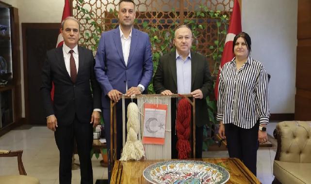 NEVŞEHİR (İGFA) - Nevşehir Belediyesi tarafından yürütülen proje çerçevesinde 29 Ekim Cumhuriyet Bayramı’na kadar tamamlanması planlanan Türk Bayrağı’na 1001 adet ilmek atılacak. Nevşehir Valisi Ali Fidan, Nevşehir Belediyesi Gençlik ve Spor Hizmetleri Müdürü Hasan Hüseyin İyilikli ile Halı Atölyesi Hocası Fatma Turgut’u makamında kabul etti.