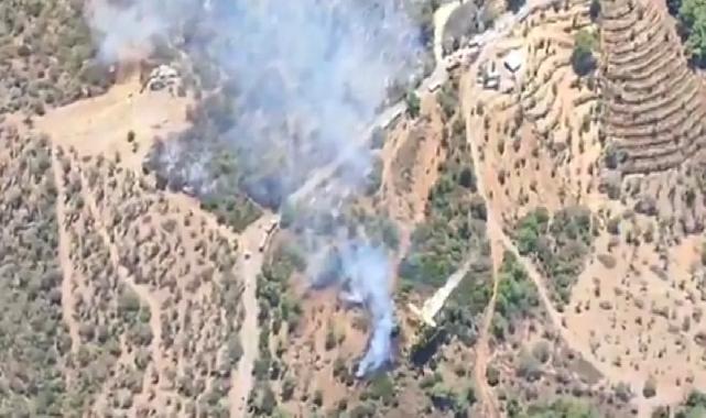 İZMİR (İGFA) - İzmir’in Seferihisar ilçesine bağlı Ulamış mevkiinde orman dışı alanda çıkan yangına, Orman Genel Müdürlüğü (OGM) ekipleri havadan ve karadan yoğun bir şekilde müdahale ediyor.