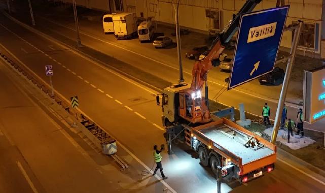 Kocaeli Büyükşehir ekipleri, kentin ana güzergâhındaki yollara sürücülerin yönlerini daha kolay bulabilmesi için L tipi levhalar monte ediyor.